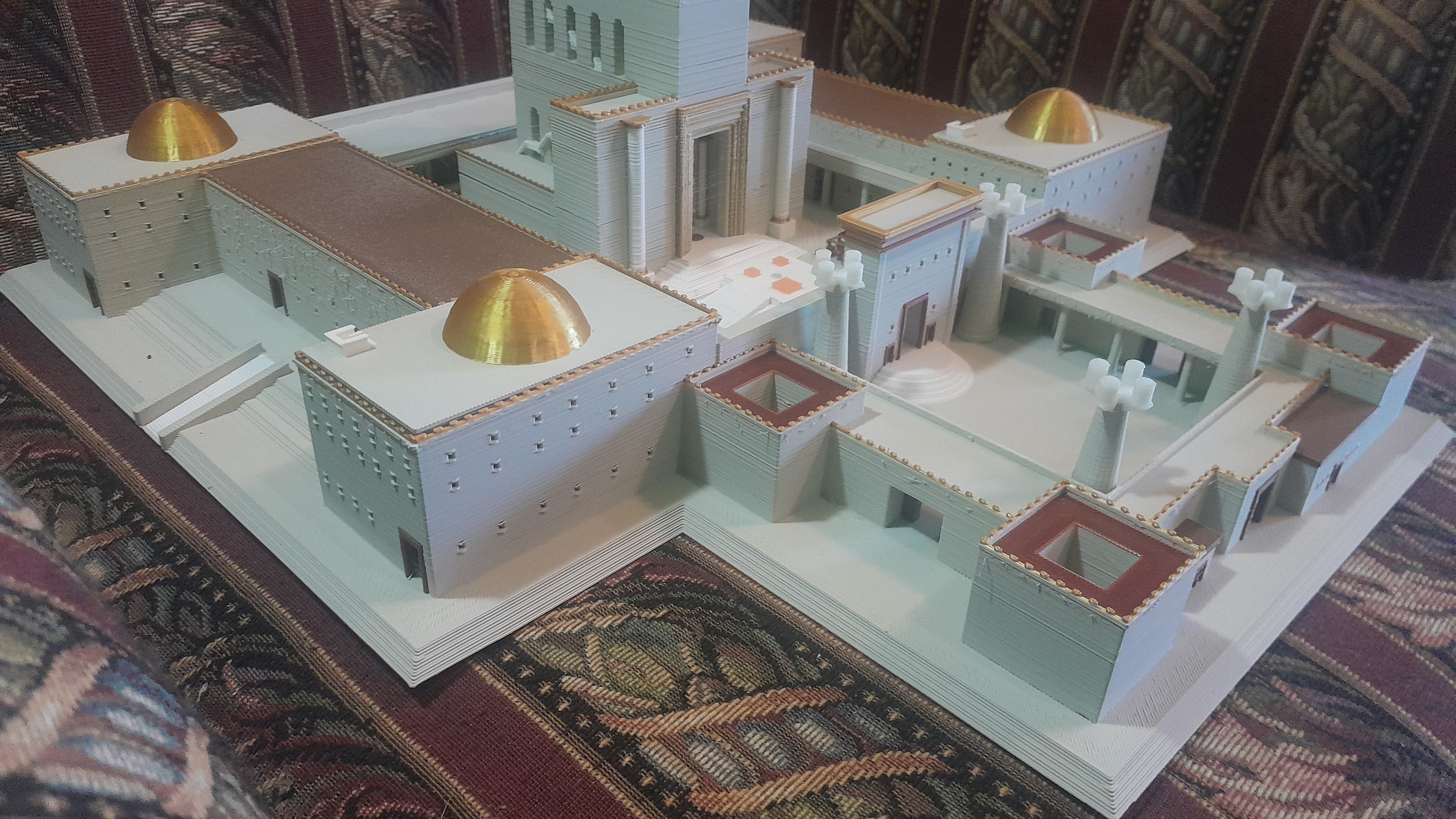 Looking at the Temple buildings. The closest corner building with gold kippa is to the southeast. (Image Yosef Eitan)