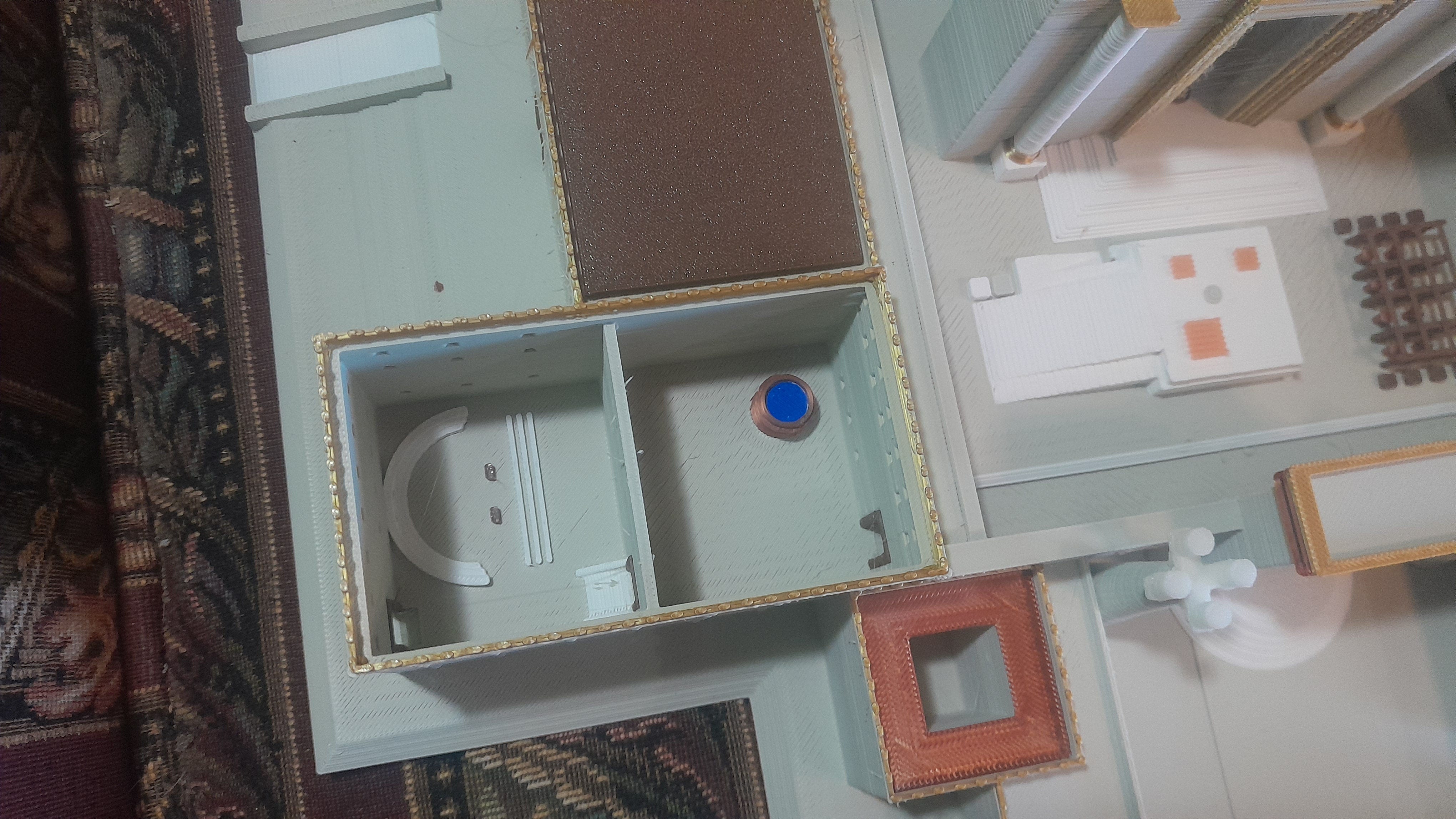 Mishnah Middot 5:3 describes six chambers in the Azarah - three on the north and three on the south. These substantial structures accommodated vital functions, including Sanhedrin deliberations in the Lishkat ha-Gazit with 71 judges in semicircle (Yoma 25a calculations) and priestly needs. The three on each side included positions at the ends near corners and one between them along the wall. Their footprint demands careful placement to avoid interference. Northern location for the Lishkat ha-Gazit would constrain the 51 amot northern slaughter space (Middot 5:1). Southeast alignment positions it externally at Yehudah’s corner without disrupting altar or ramp flow, with kedushah (sanctity) entering through the inward door (Yoma 25a; Rambam Hilchot Beit ha-Bechirah 5:9).